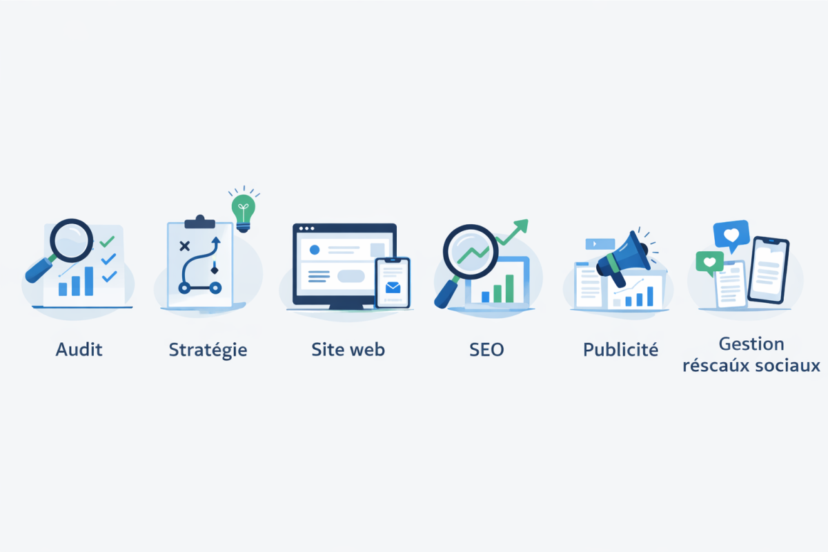 Nous intervenons à chaque étape de votre développement digital, de la réflexion stratégique à la mise en œuvre opérationnelle.
